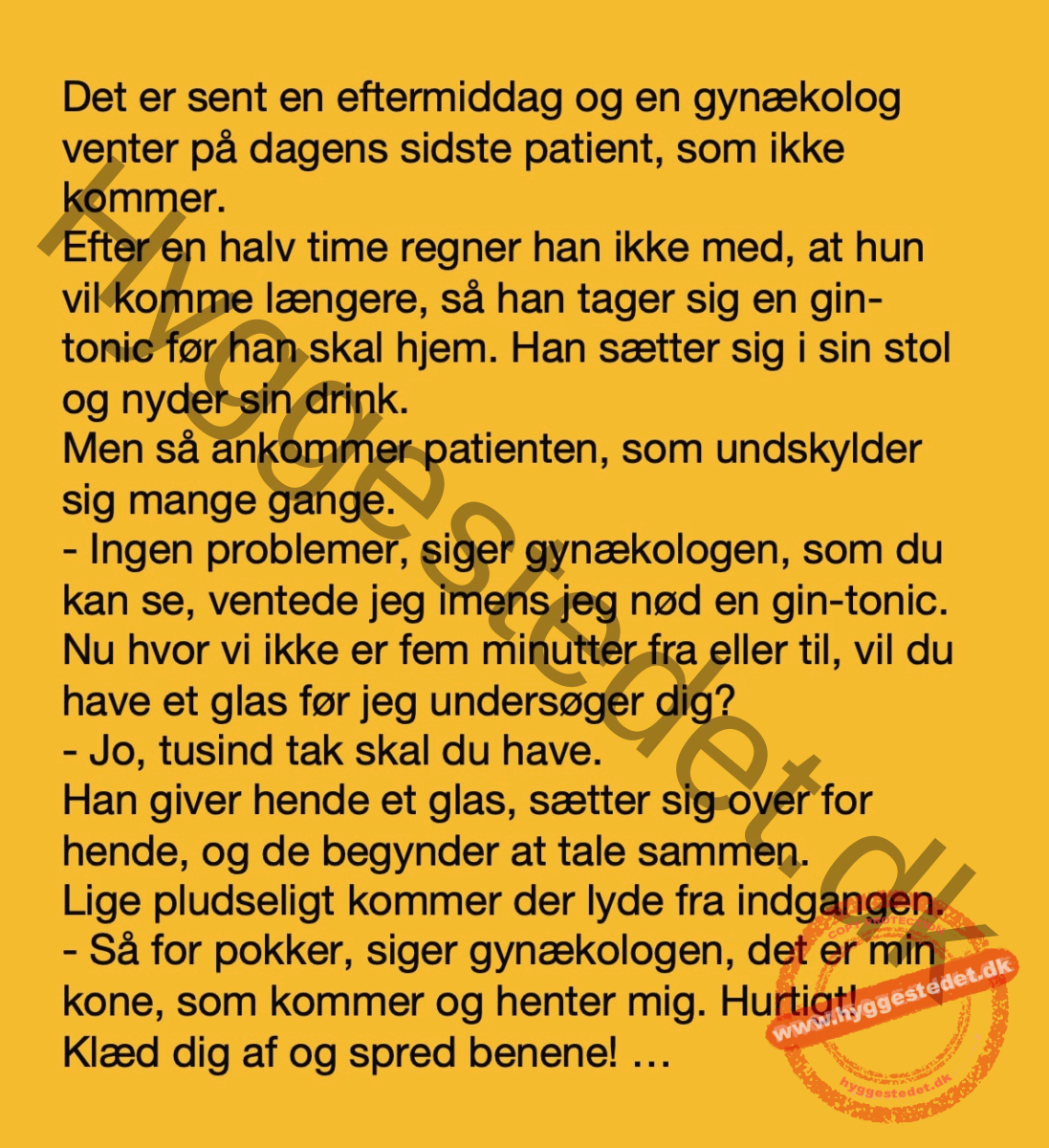 Det er sent en eftermiddag og en gynækolog venter på dagens sidste patient, som ikke kommer FacebookTwitterPinterestWhatsApp SCROLL NED FOR FLERE SJOVE JOKES! :)