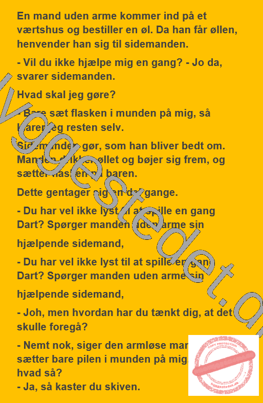En armløs mand går ind på et værtshus… FacebookTwitterPinterestWhatsApp SCROLL NED FOR FLERE SJOVE JOKES! :)