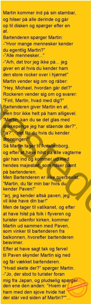 En mand kommer ind på en bar og alle hilser på ham… FacebookTwitterPinterestWhatsApp SCROLL NED FOR FLERE SJOVE JOKES! :)
