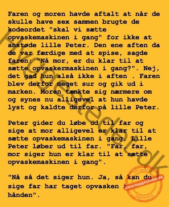 Faren og moren havde aftalt at når de skulle hygge havde de et kodeord… FacebookTwitterPinterestWhatsApp SCROLL NED FOR FLERE SJOVE JOKES! :)