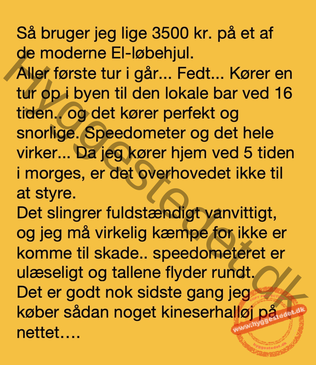 Har lige købt et af de nye smarte el-løbehjul til 3500,- FacebookTwitterPinterestWhatsApp SCROLL NED FOR FLERE SJOVE JOKES! :)