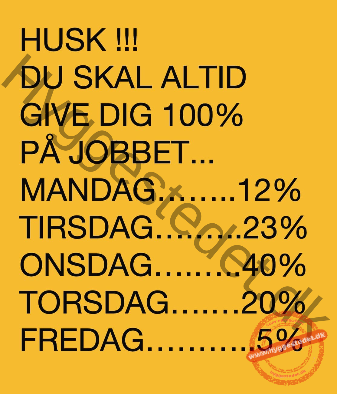 Husk! Du skal altid give dig 100% på jobbet… FacebookTwitterPinterestWhatsApp SCROLL NED FOR FLERE SJOVE JOKES! :)
