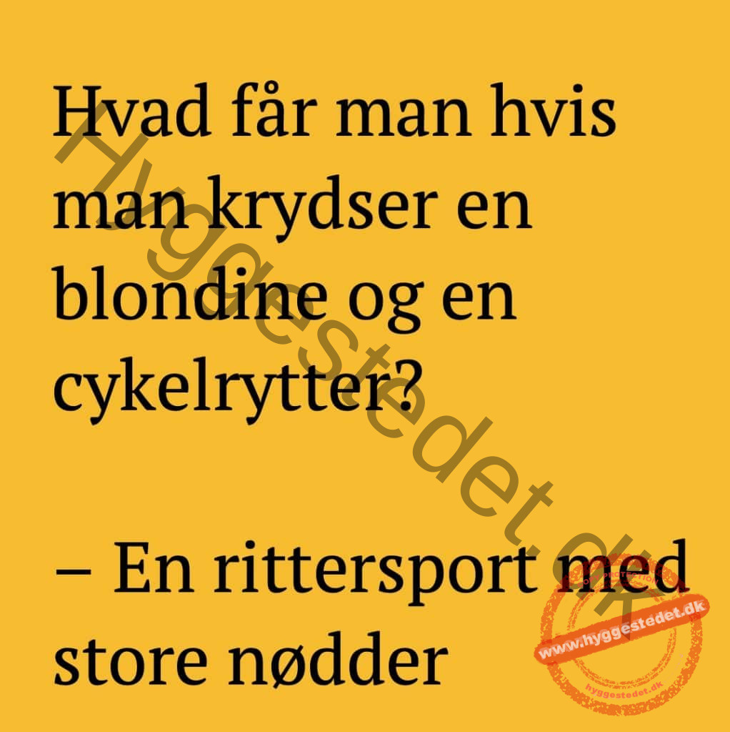 Hvad får man hvis man krydser en blondine og en cykelrytter? FacebookTwitterPinterestWhatsApp SCROLL NED FOR FLERE SJOVE JOKES! :)
