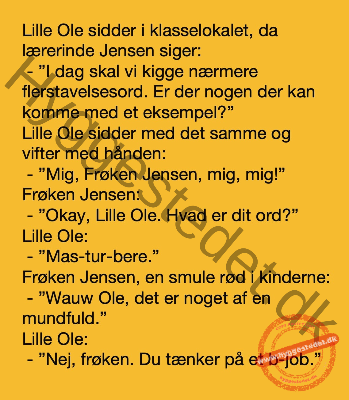Lille Ole sidder i klasselokalet, da de skal til at kigge på flerstavelsesord… FacebookTwitterPinterestWhatsApp SCROLL NED FOR FLERE SJOVE JOKES! :)