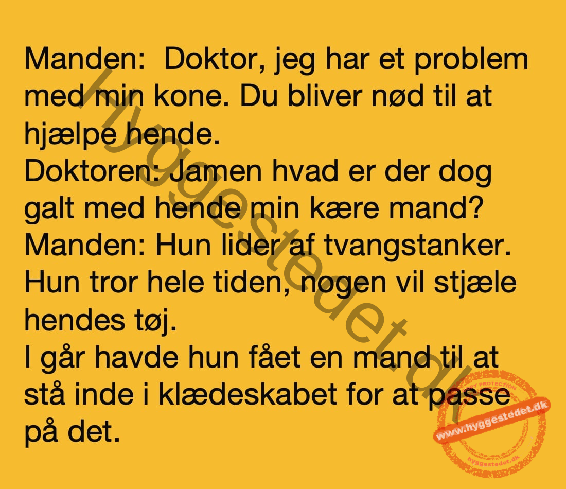 Manden til Doktoren – jeg har et problem med min kone. Du bliver nød til at hjælpe hende. FacebookTwitterPinterestWhatsApp SCROLL NED FOR FLERE SJOVE JOKES! :)