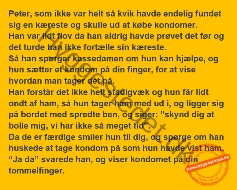 Peter havde fået en kæreste og skulle ned for at købe kondomer for første gang… FacebookTwitterPinterestWhatsApp SCROLL NED FOR FLERE SJOVE JOKES! :)