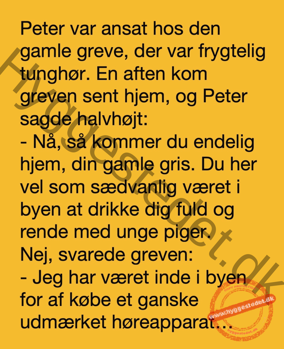 Peter var ansat hos den gamle greve, der var frygtelig tunghør FacebookTwitterPinterestWhatsApp SCROLL NED FOR FLERE SJOVE JOKES! :)