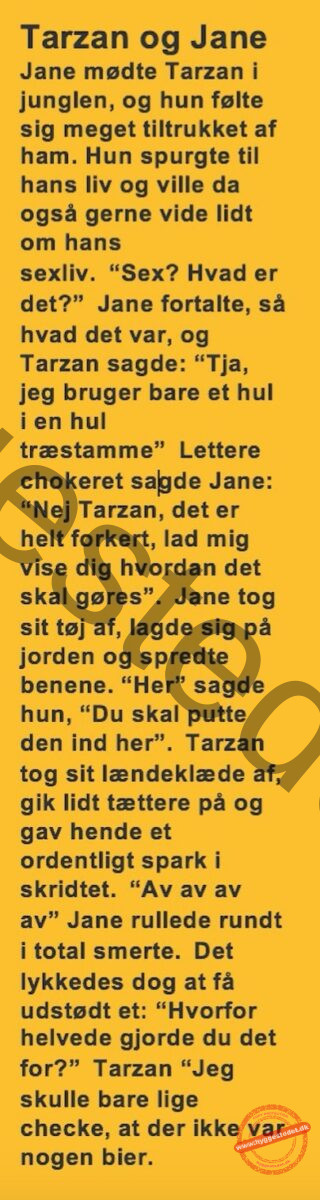 Jane mødte Tarzan i junglen og var lidt vild efter ham…. FacebookTwitterPinterestWhatsApp SCROLL NED FOR FLERE SJOVE JOKES! :)