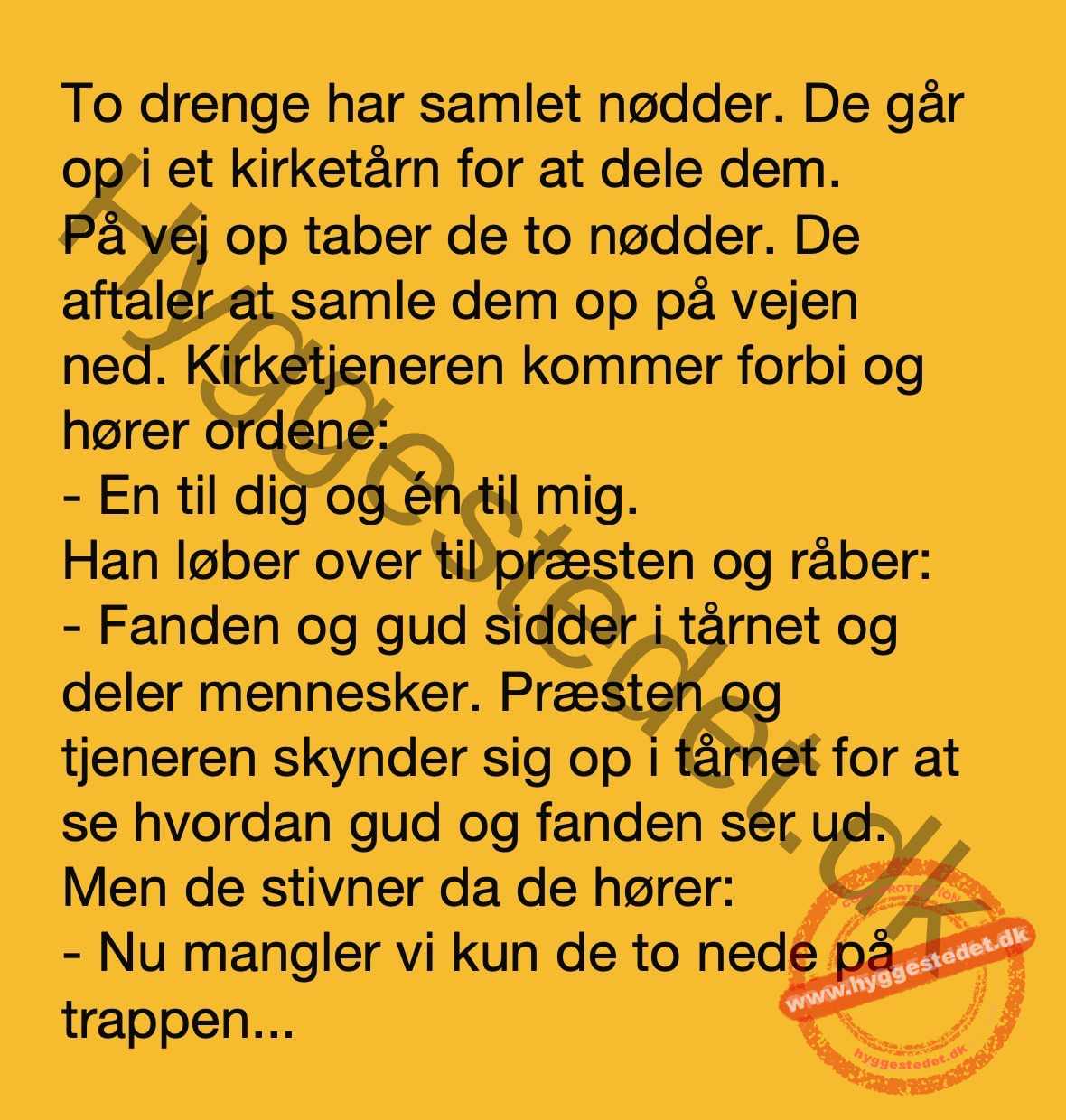 To drenge har samlet nødder og går op i et kirketårn for at dele dem FacebookTwitterPinterestWhatsApp SCROLL NED FOR FLERE SJOVE JOKES! :)
